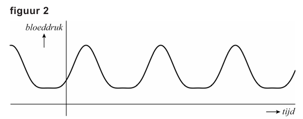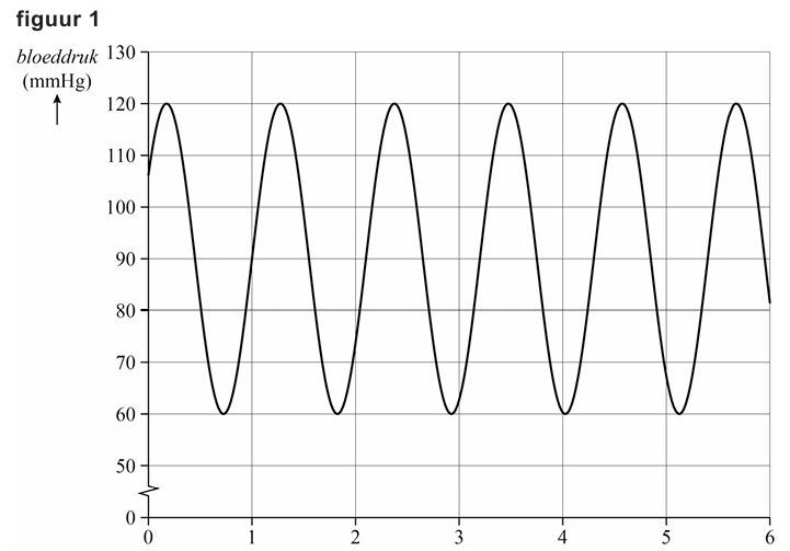 De bloeddruk in een slagader stijgt en daalt wanneer het hart het bloed door de aderen pompt. Dit stijgen en dalen is een periodiek verschijnsel dat te benaderen is met een sinusoïde. De periode hiervan is de tijd tussen twee opeenvolgende hartslagen. De bloeddruk van een gezonde volwassen man in rust is vereenvoudigd weergegeven in de grafiek van figuur 1.