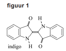 Geef in de tabel op de uitwerkbijlage voor elk experiment aan of blauwkleuring door de vorming van indigo optreedt. Gebruik onder andere informatie uit figuur 3.